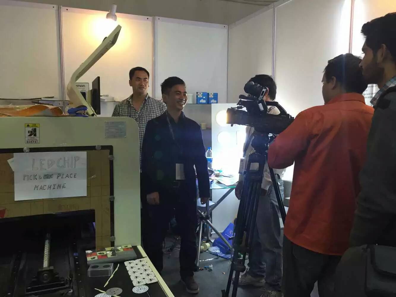 國產(chǎn)LED貼片機(jī)領(lǐng)導(dǎo)品牌,鑫久盛參展LED國際照明展,場面火爆,引印度媒體關(guān)注并接受印度媒體采訪!
